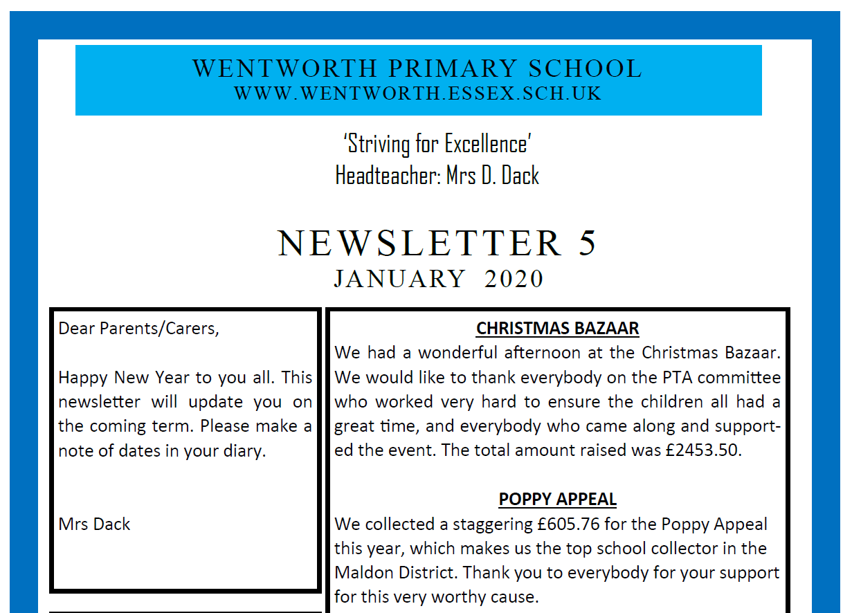 Newsletter 5 Tuesday 7th, January 2020 Newsletter 5 sent home today Newsletter 5 - January 2020 Back to News